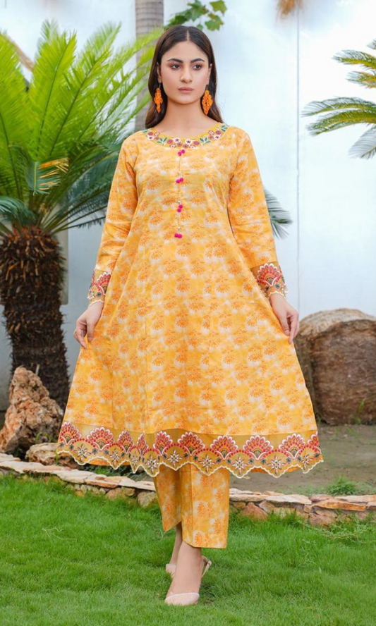 Stitched 2pc Suit Shirt Front embroideredFabric : Cotton Lawn Trouser Print trouserFabric : Cotton Lawn...
