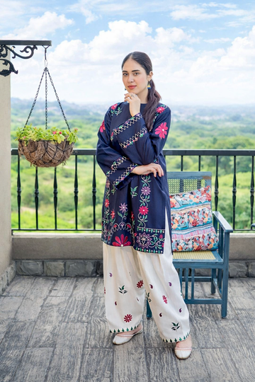 UNSTITCHED 2PC SUIT Nea is tailored in a rich cobalt blue, elevated with intricate embroidery...