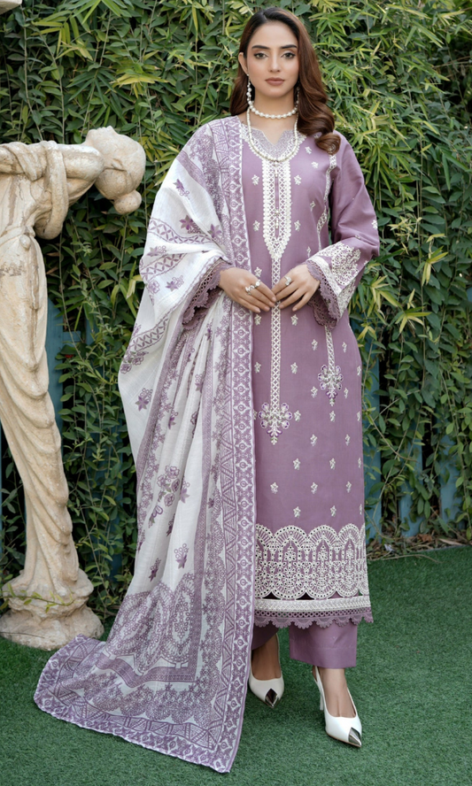 Stitched 3pc Suit ShirtComplete Front embroideredFabric : Cotton Dupatta Embroided DupattaFabric : Cotton Net TrouserFabric...