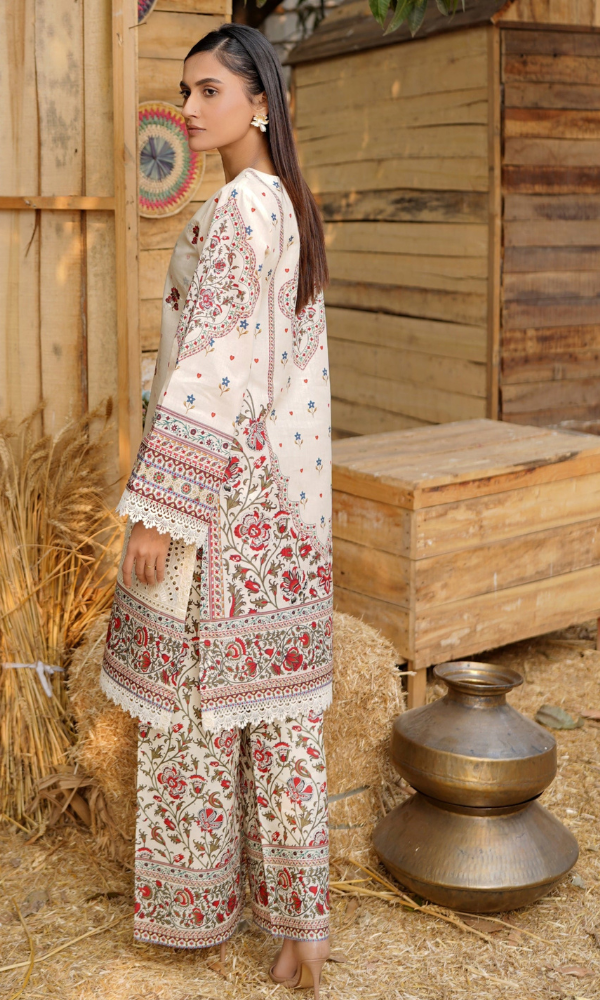 2 Piece Stitched Cotton Lawn Embroided Suit with Boring EJ-119