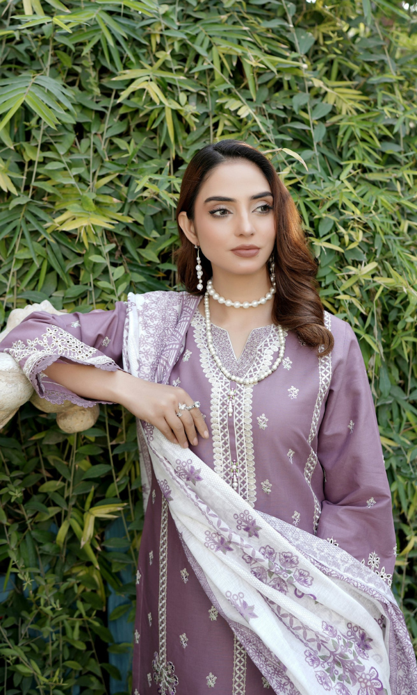 3 Piece Stitched Cotton Lawn Embroided Suit EJ-101