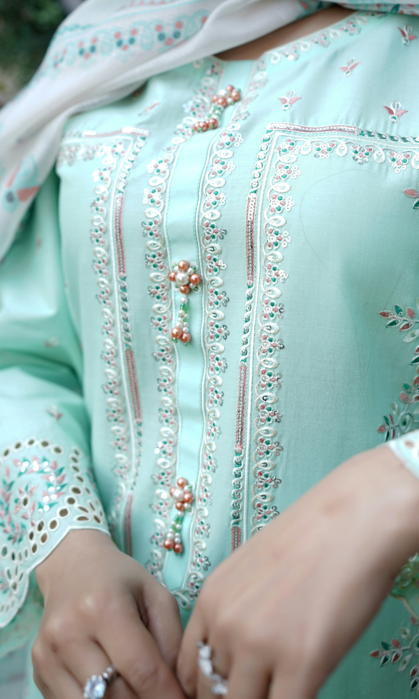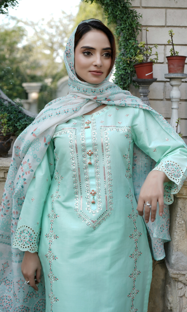 3 Piece Stitched Cotton Lawn Embroided-Suit- EJ-106