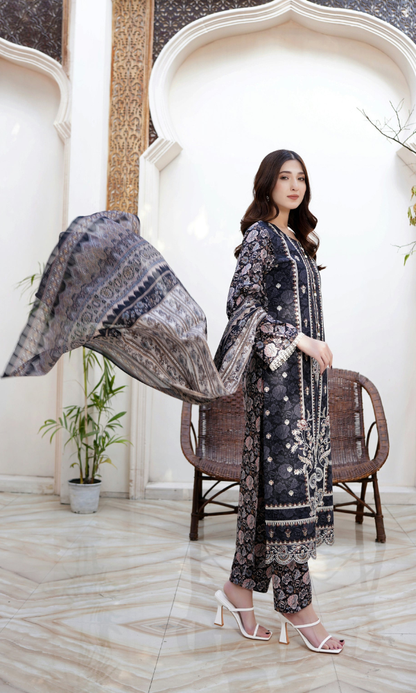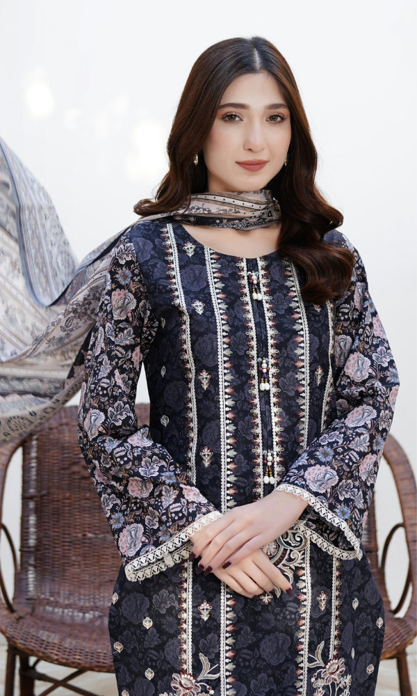 3 Piece Stitched Cotton Embroided Suit EJ-124