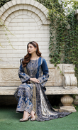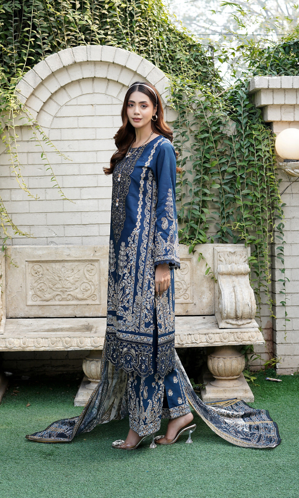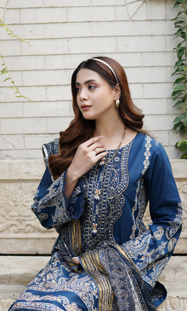 3 Piece Stitched Cotton Embroided-Suit with Gold Print EJ-109