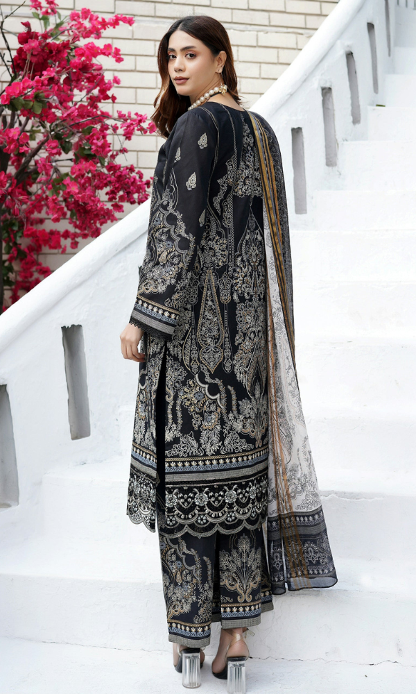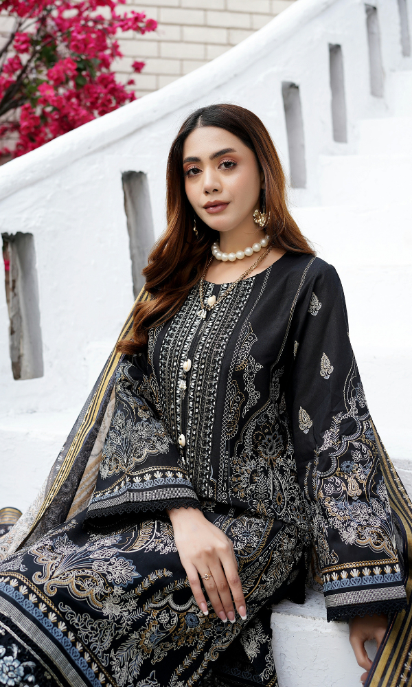 3 Piece Stitched Cotton Embroided-Suit with Gold Print EJ-112