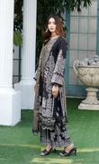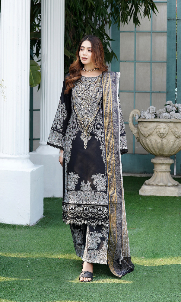 3 Piece Stitched Cotton Embroided Suit with Gold Print EJ-107