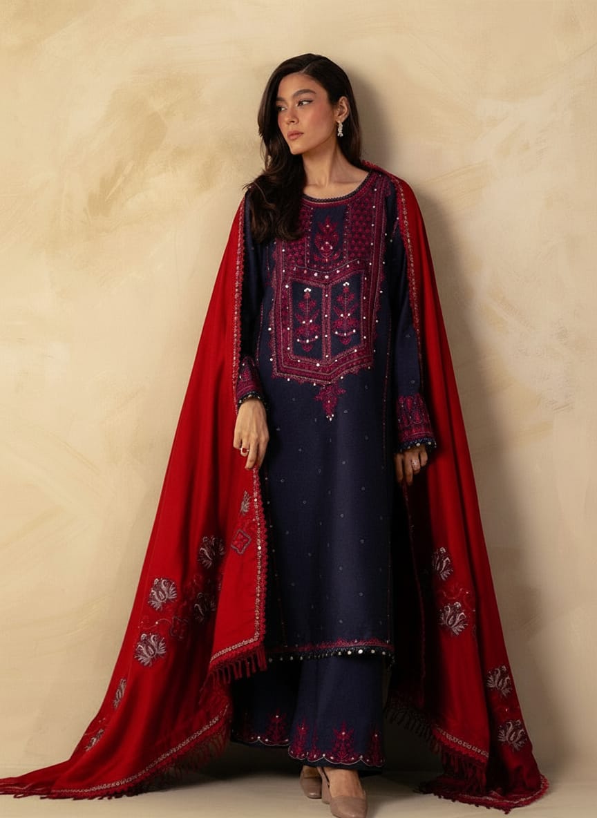 ZARA SHAH JAHAN - 3PC DHANAK EMBROIDERED JA-80B